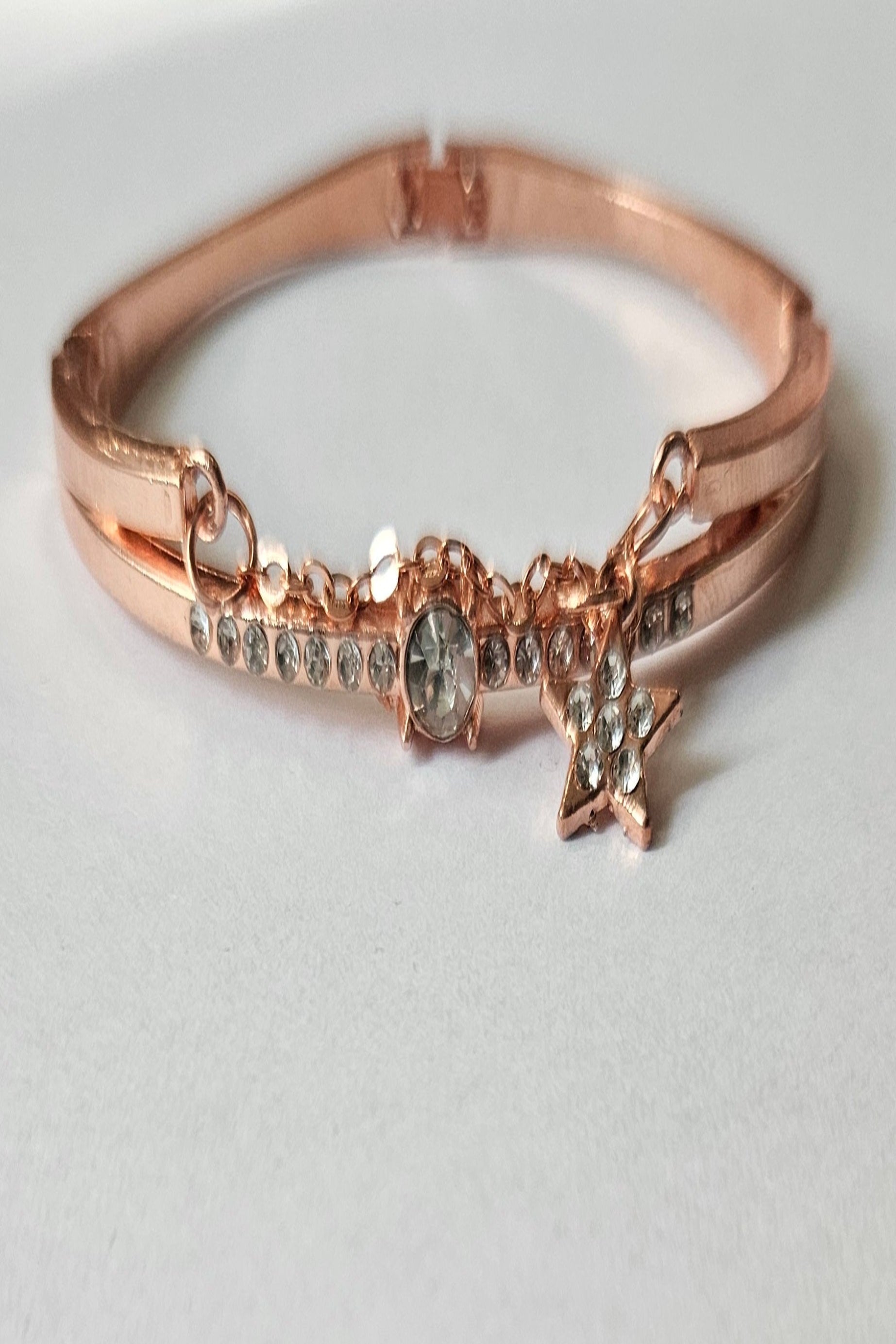 Fém anyaggal, arany színben, csillogó kövekkel.